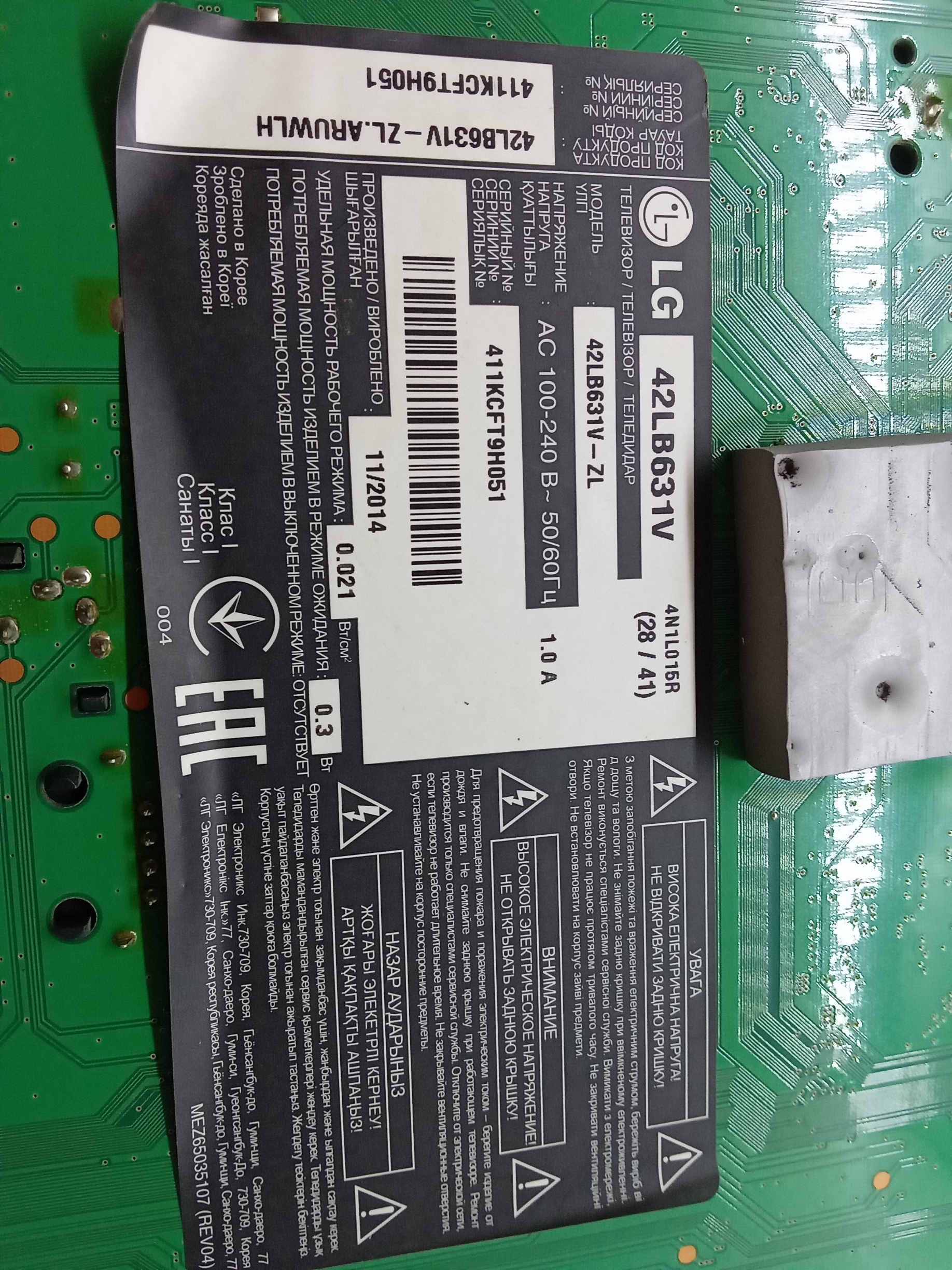 Основная плата EAX65384004(1.5) телевизора LG 42LB631V