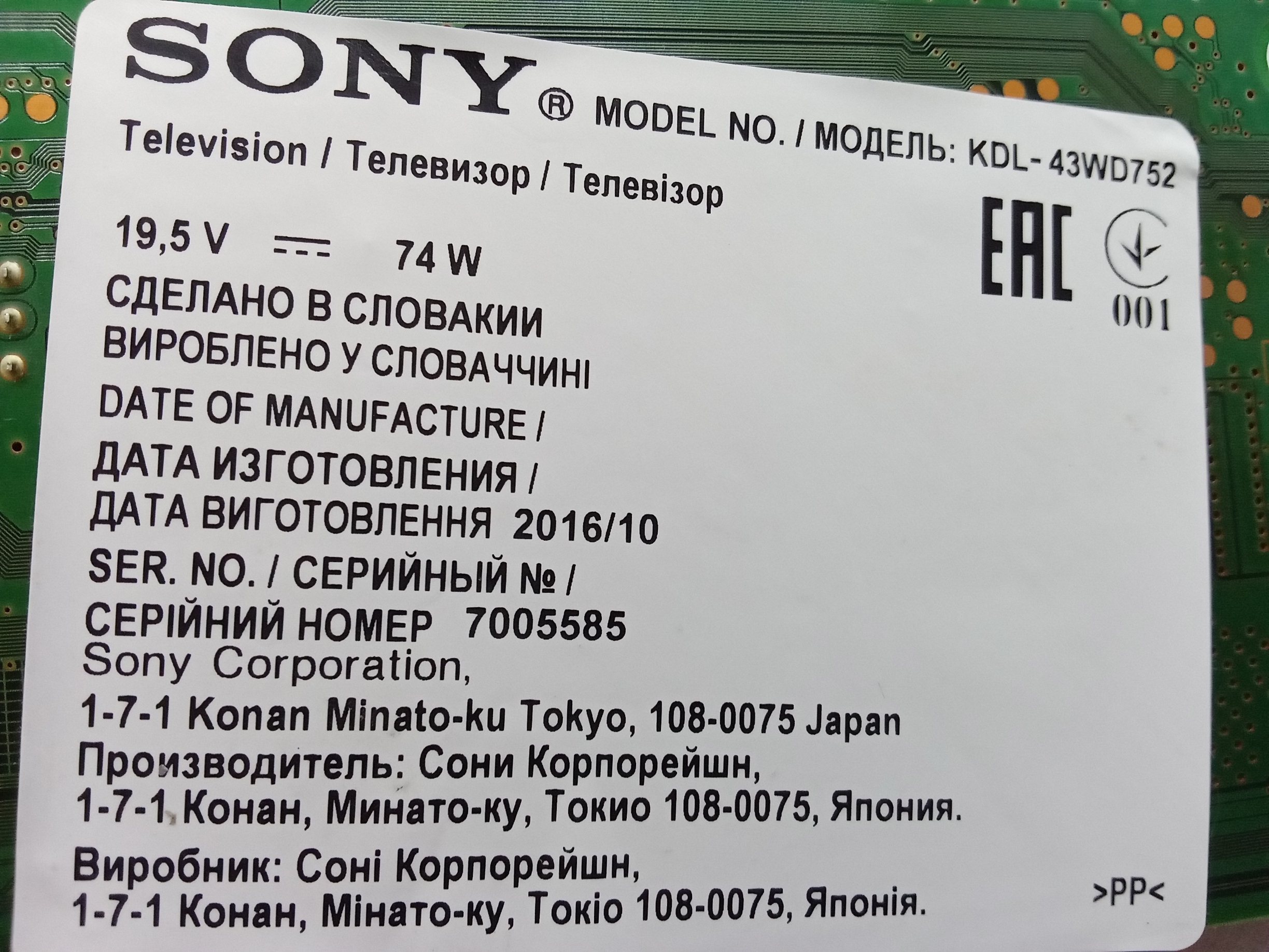 Основная плата 1-980-335-12 телевизора Sony KDL-43WD752